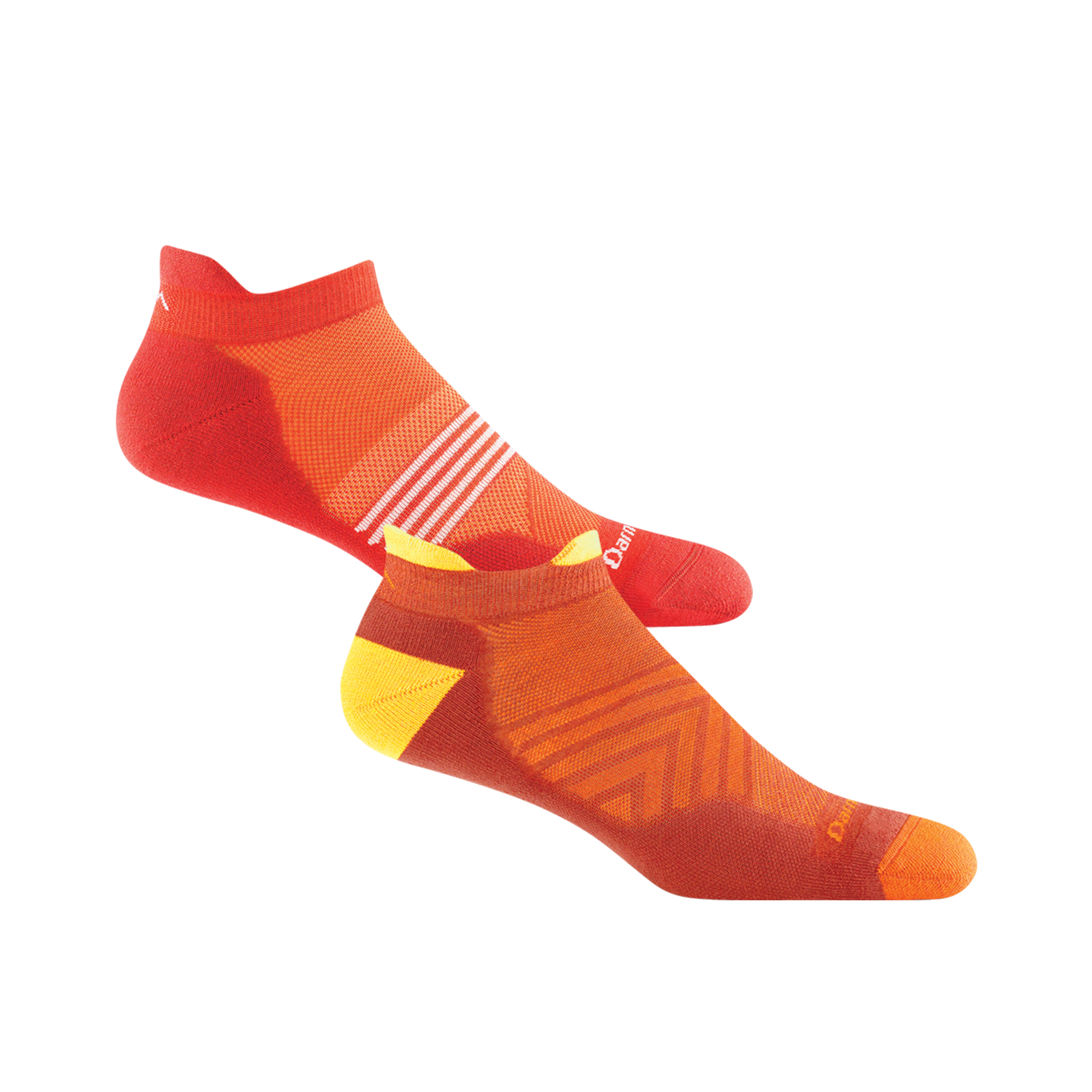 The bundle also includes the Men’s Element No Show Tab Lightweight Running Sock in Tiger with the Men’s No show Tab in Lava. NOTE: Due to their respective yarn constructions, our Ultra-Lightweight Run socks will look much smaller off foot compared to other styles of the same size. But don’t worry. Slip them on and you’ll see they both fit perfectly – the Run sock just offers more stretch and rebound.