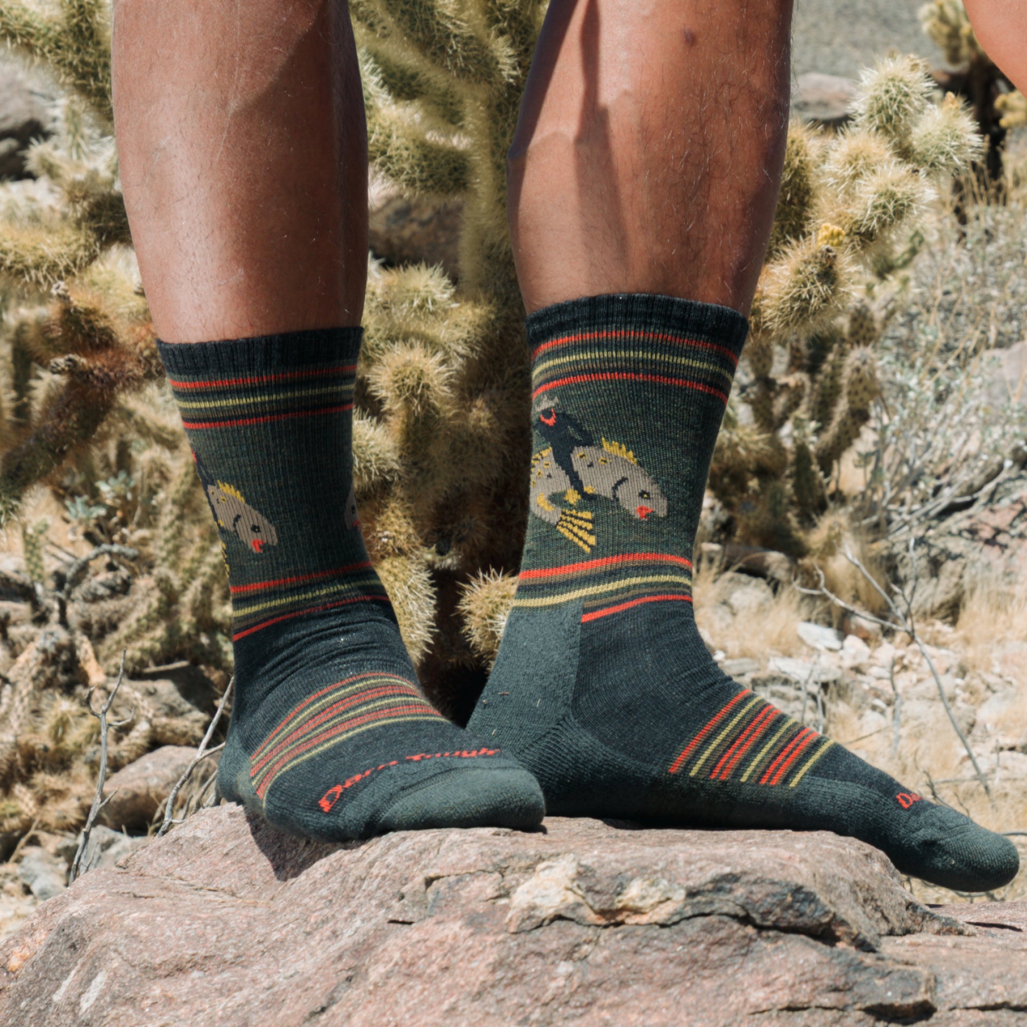 The Willoughby hiking sock might be named after Vermont’s most insta-spammable lake, but the real influencers are the sure-footed critters paddling across its buttery-soft, ribbed cuff. Dip into these lightweight Micro Crew height socks, knit with climate-controlling Merino Wool and cozy cushion underfoot, and you’ll be trekking on without fear of the dreaded swamp-foot that can lead to blisters.