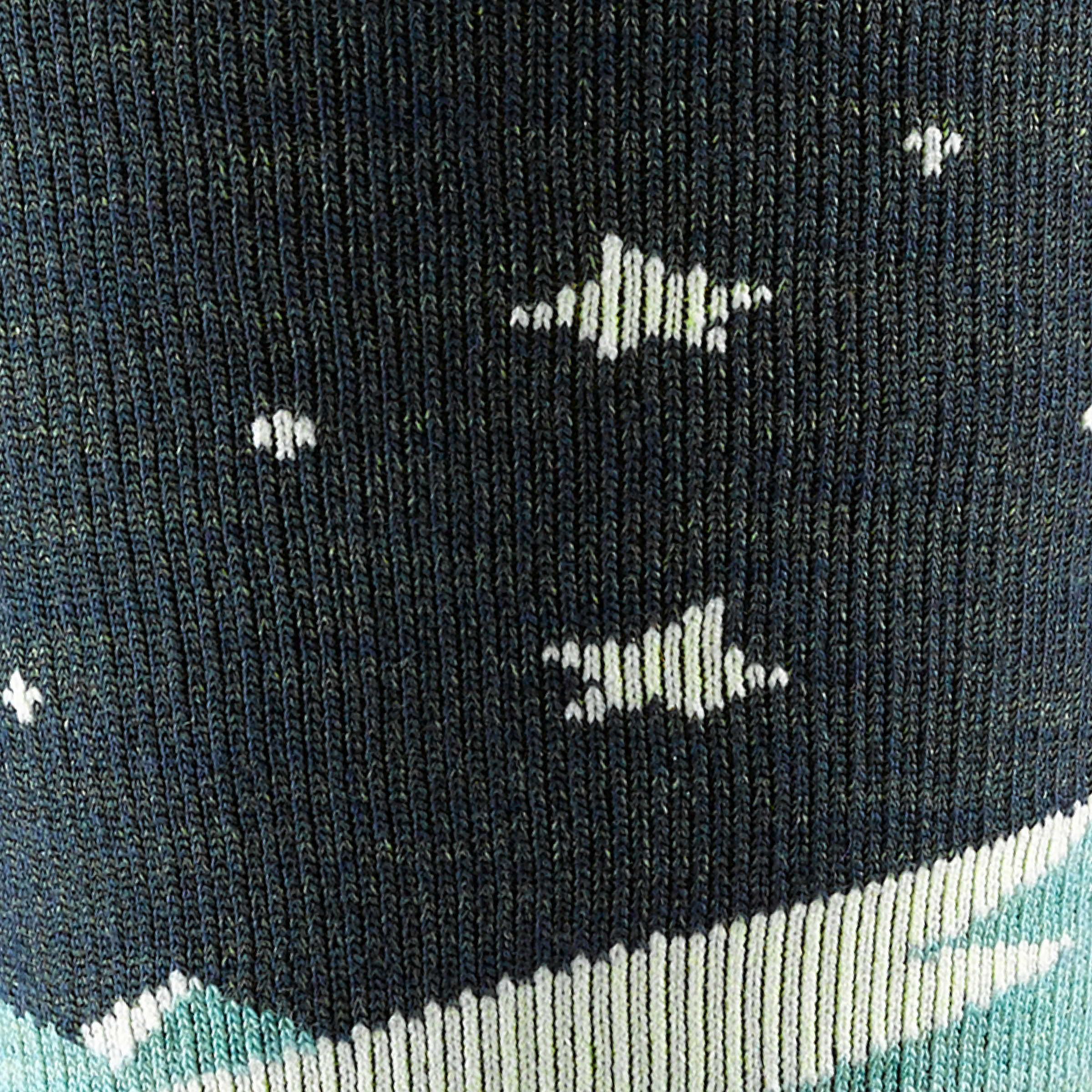 A classic ski sock with a drop needle patterning for a smooth fit and complete comfort from toes to calf. The Aurora is a resplendent sock that feels just as good as it looks. Always guaranteed for life. always Merino Wool; this is a sock that will keep you warm and cozy no matter what. Made in Vermont. USA. where the most common northern light these socks will see is a headlamp on a pre-dawn skin track.